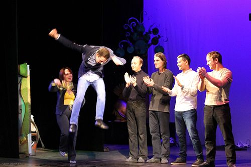 22 февраля женщины Ульяновского театра кукол поздравили мужчин с предстоящим праздником. Было много шуток, веселья и номеров. Все изрядно повеселились. Театральный капустник в криминальном жанре пришелся очень кстати и дал большой простор для фантазии. Мужчины охотно участвовали в конкурсах. Они достойно ответили на каверзные вопросы, смело раскатали губу и примерили на себя неожиданные костюмы. Их не смутили сюрпризы. Все продемонстрировали смелость и находчивость. Мы поздравляем сильную половину человечества!