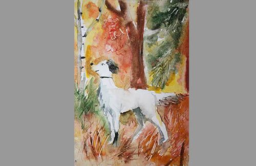 Эту работы Аллы нам хотелось бы выделить отдельно. У каждого свое виденье мира. Каждый по-своему чувствует, ощущает, переживает и творит. Когда смотришь на ее Бима, то он предстает перед нами жизнерадостным и веселым. Мир вокруг него играет красками. У Бима была хорошая и яркая жизнь.