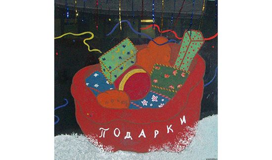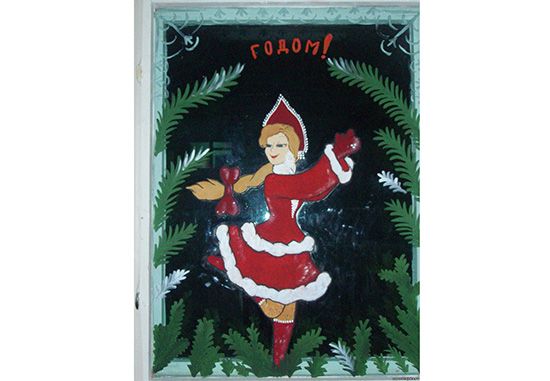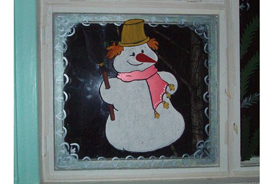 Если кто-то интересуется росписью по стеклу, могу сразу оговориться, что это густая гуашь. Почему именно она? Гуашь покрывная краска. Она хорошо ложится на стекло, не течет и не просвечивает. У нее еще есть много плюсов, но, что заинтересует мам, она легко смывается. Так как подобные рисунки наносят только на время праздников, то это, сами понимаете, немаловажно. Современная гуашь очень разнообразна, с разными эффектами. Есть даже светящаяся в темноте. Я предпочитаю самую обычную.
