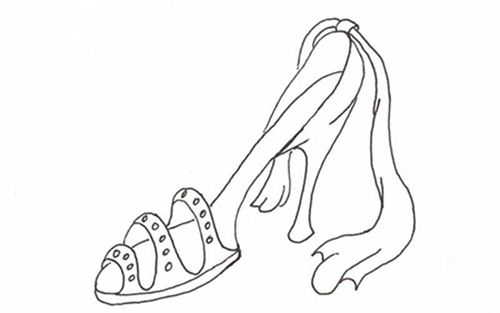 Она родилась вместе со своей сестрой в руках знаменитого мастера, делавшего обувь на заказ. Он очень долго трудился, переплетая тонкие ремешки, украшая их стразами и проверяя, все ли детали на месте. Наконец, работа была закончена, и туфельку поставили на бархатную подушечку, где уже стояла ее старшая сестра.